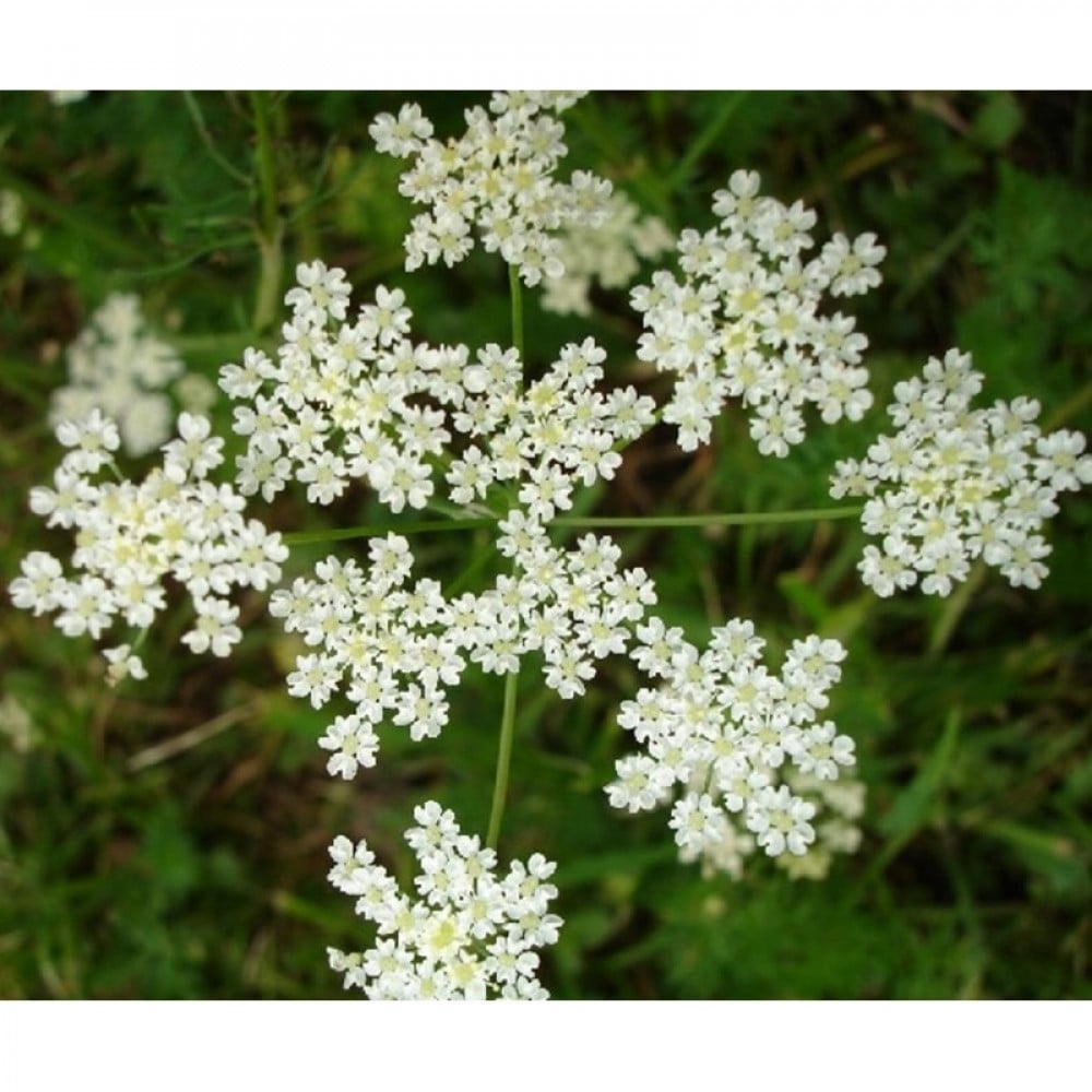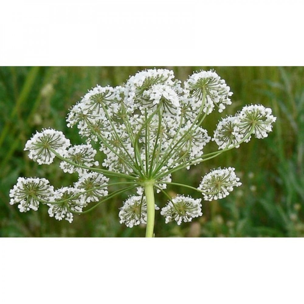 يليها أزهار مضلعة على شكل دمعة الفواكه التي تسمى اليانسون والتي تشتهر بها هذه العشبة بشكل خاص.
