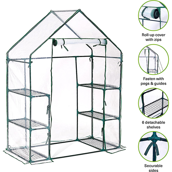 البيت المحمي مزود بغطاء مزود بسحابات بحيث يمكنك بسهولة فتح وإغلاقه لمنح النباتات الرعاية والتغذية اللازمة بالإضافة إلى التهوية المناسبة.